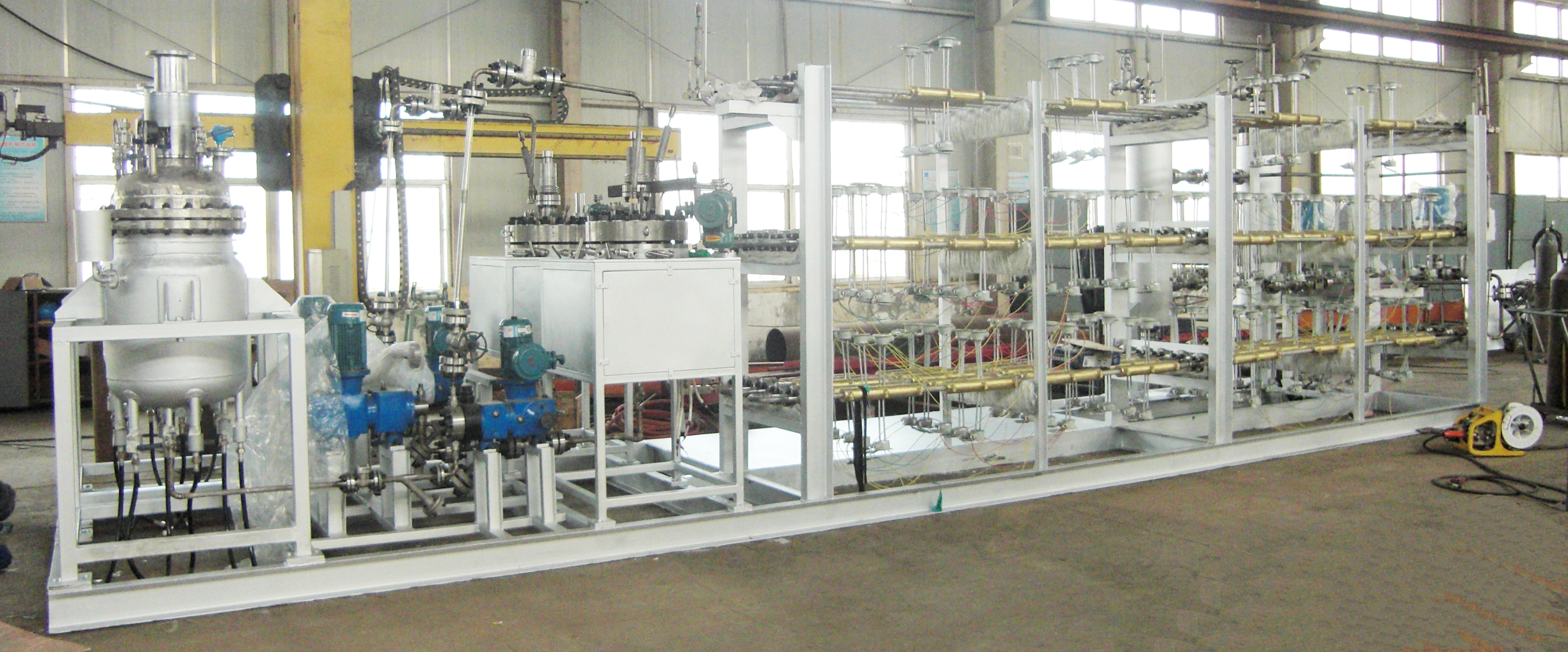 加氫反應(yīng)分為吸熱反應(yīng)和放熱反應(yīng),有些加氫反應(yīng)在反應(yīng)過(guò)程中會(huì)釋放大量的熱能。為了生產(chǎn)安全,并及時(shí)降低釜內(nèi)溫度,有些工藝要求釜內(nèi)配大面積的冷卻盤管。此時(shí)單層冷卻盤管無(wú)法滿足工藝要求,需要雙層或更多層盤管有效及時(shí)降溫。正威機(jī)械生產(chǎn)的6層盤管內(nèi)配吸氫攪拌槳,加…
